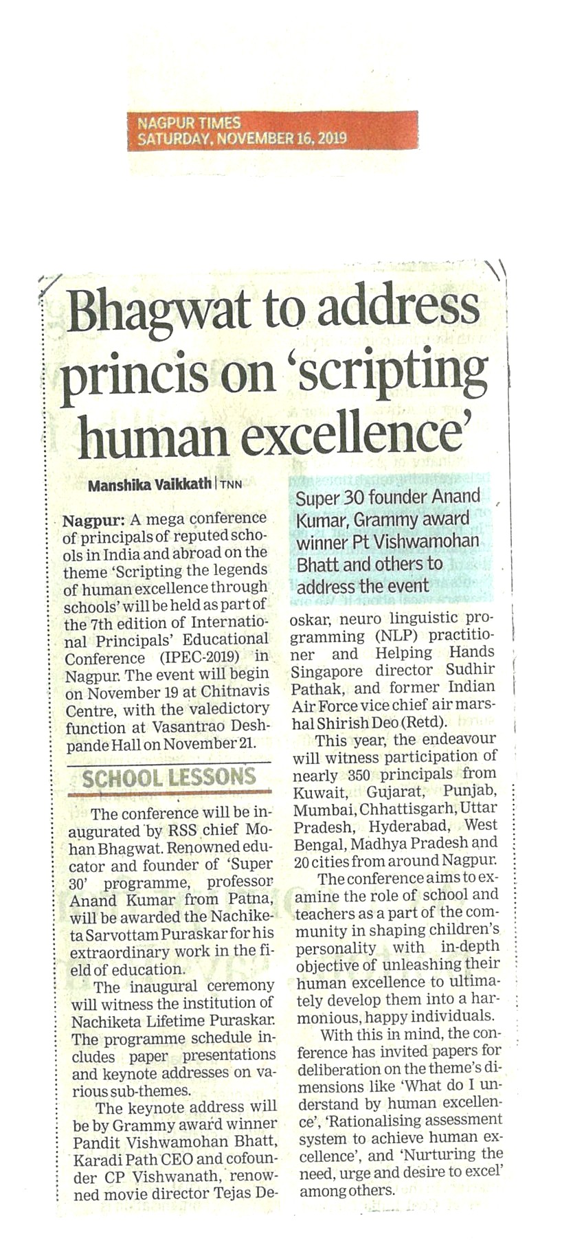 International Principals' Educational Conference(IPEC) Organised by The South Public School, Omkar Nagar, Nagpur